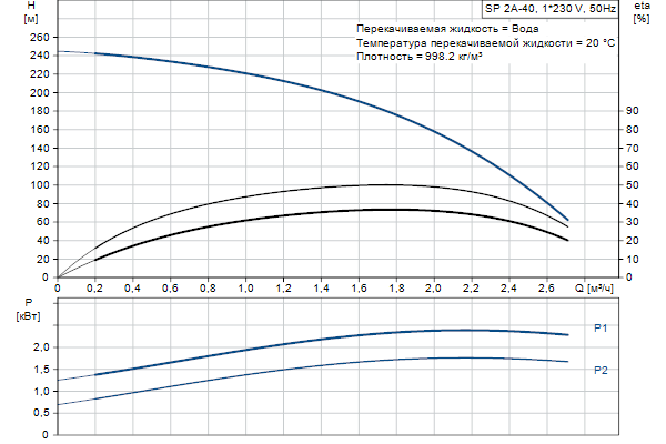 Насос оснащен электродвигателем MS40002.2 кВт с защитой от песка, торцевым уплотнением вала, опорными подшипниками с водяной смазкой и мембраной для компенсации объема. Электродвигатель представляет собой погружной двигатель в герметическом исполнении, обладающий хорошей механической стабильностью и высоким КПД. Подходит для температур до 40 °C.