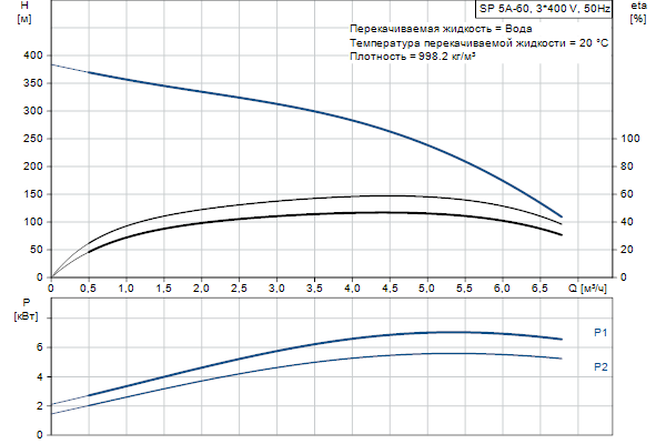Насос оснащен электродвигателем MS40005.5 кВт с защитой от песка, торцевым уплотнением вала, опорными подшипниками с водяной смазкой и мембраной для компенсации объема. Электродвигатель представляет собой погружной двигатель в герметическом исполнении, обладающий хорошей механической стабильностью и высоким КПД. Подходит для температур до 40 °C.