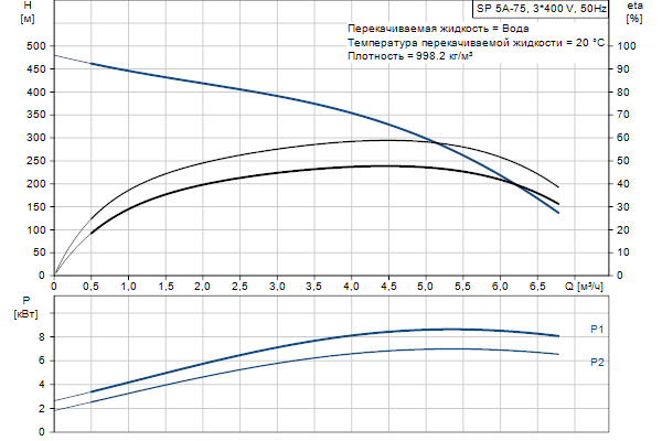 Насос оснащен электродвигателем MS60007.5 кВт с защитой от песка, торцевым уплотнением вала, опорными подшипниками с водяной смазкой и мембраной для компенсации объема. Электродвигатель представляет собой погружной двигатель в герметическом исполнении, обладающий хорошей механической стабильностью и высоким КПД. Подходит для температур до 40 °C.