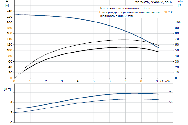 Насос оснащен электродвигателем MS40005.5 кВт с защитой от песка, торцевым уплотнением вала, опорными подшипниками с водяной смазкой и мембраной для компенсации объема. Электродвигатель представляет собой погружной двигатель в герметическом исполнении, обладающий хорошей механической стабильностью и высоким КПД. Подходит для температур до 40 °C.