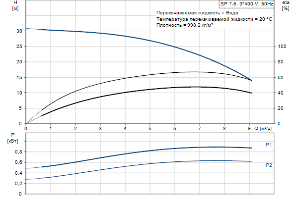Насос оснащен электродвигателем MS4020.75 кВт с защитой от песка, манжетным уплотнением, опорными подшипниками с водяной смазкой и мембраной для компенсации объема. Электродвигатель представляет собой погружной двигатель в герметическом исполнении, обладающий хорошей механической стабильностью и высоким КПД. Подходит для температур до 40 °C.