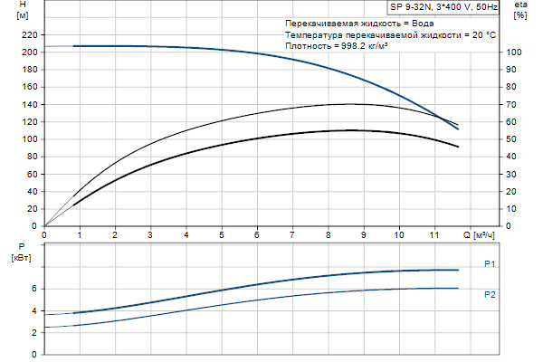 Насос оснащен электродвигателем MS40007.5 кВт с защитой от песка, торцевым уплотнением вала, опорными подшипниками с водяной смазкой и мембраной для компенсации объема. Электродвигатель представляет собой погружной двигатель в герметическом исполнении, обладающий хорошей механической стабильностью и высоким КПД. Подходит для температур до 40 °C.