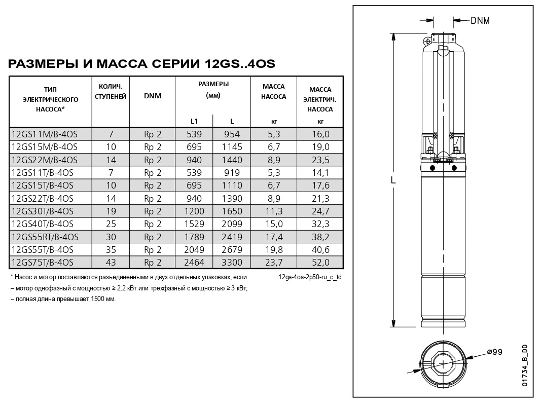 Центробежный насос Lowara 12GS55T/B-4OS