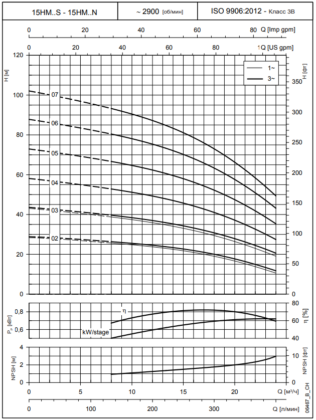 Насосы Lowara серии e-HM имеют самый высокий в своем классе КПД - до 72% и потребляют в среднем на 30% меньше энергии по сравнению с аналогами конкурентов. Толщина корпуса увеличена на 20%, что позволяет насосу работать в тяжелых условиях, например, при температуре жидкости до 120С и одновременно максимальном давлении PN16. Двигатели IE3 и сбалансированное рабочее колесо обеспечивают высокую производительность и бесшумную работу (до 60 дБ). Область применения: Повышение давления, моечные установки, циркуляция в системах отопления, вентиляции и кондиционирования.