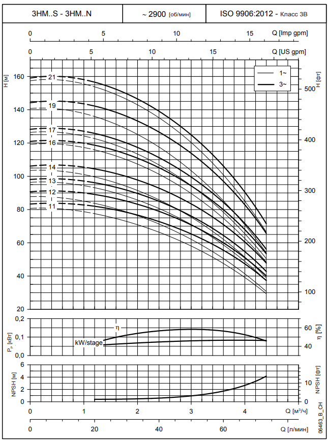 Насосы Lowara серии e-HM имеют самый высокий в своем классе КПД - до 72% и потребляют в среднем на 30% меньше энергии по сравнению с аналогами конкурентов. Толщина корпуса увеличена на 20%, что позволяет насосу работать в тяжелых условиях, например, при температуре жидкости до 120С и одновременно максимальном давлении PN16. Двигатели IE3 и сбалансированное рабочее колесо обеспечивают высокую производительность и бесшумную работу (до 60 дБ). Область применения: Повышение давления, моечные установки, циркуляция в системах отопления, вентиляции и кондиционирования.