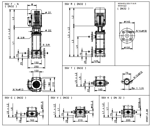 Насосы серии Lowara e-SV N – это вертикальные многоступенчатые насосы с электродвигателем. Гидравлическая часть, расположенная между верхней крышкой и корпусом насоса, крепится соединительными шпильками. Сбалансированное рабочее колесо значительно снижает осевую нагрузку на подшипники и позволяет использовать стандартный электродвигатель класса IЕ3. Модификация N: круглые фланцы, патрубки расположены в линию "ин-лайн". Область применения: водоснабжение, сельское хозяйство, легкая промышленность, очистка воды, системы отопления и кондиционирования.