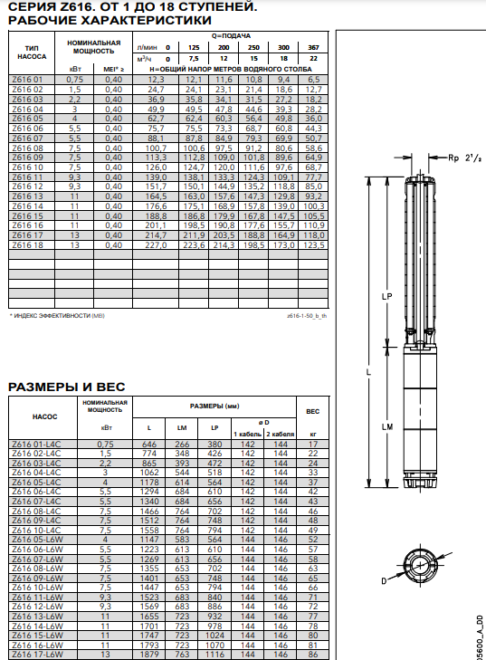 Многоступенчатые скважинные насосы со встроенным реверсивным (обратным) клапаном, предназначенные для шестидюймовых скважин 6" с двигателями Lowara. Для перекачивания чистых и незначительно агрессивных жидкостей; допустимое содержание песка 100 г/м3.