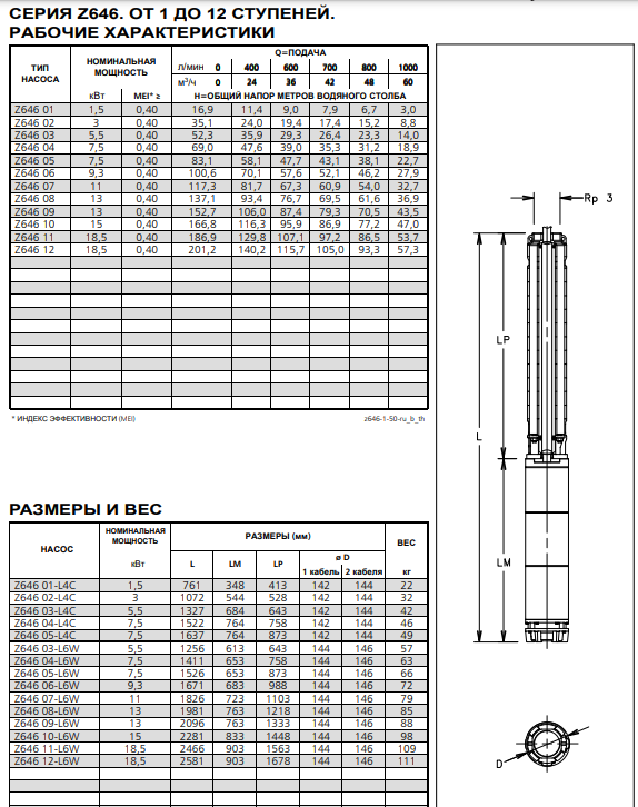 Многоступенчатые скважинные насосы со встроенным реверсивным (обратным) клапаном, предназначенные для шестидюймовых скважин 6" с двигателями Lowara. Для перекачивания чистых и незначительно агрессивных жидкостей; допустимое содержание песка 100 г/м3.