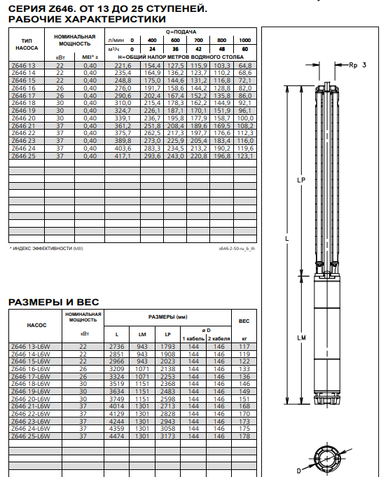 Многоступенчатые скважинные насосы со встроенным реверсивным (обратным) клапаном, предназначенные для шестидюймовых скважин 6" с двигателями Lowara. Для перекачивания чистых и незначительно агрессивных жидкостей; допустимое содержание песка 100 г/м3.