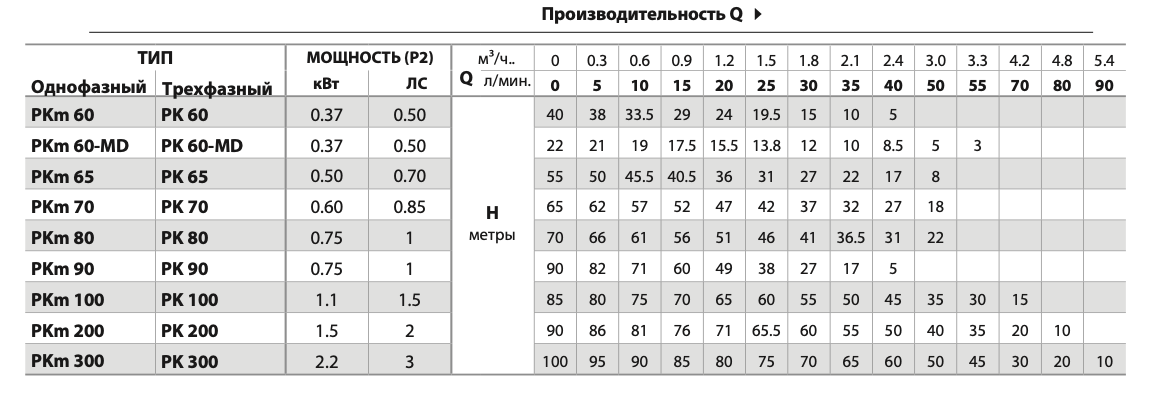 Электронасосы серии PK с рабочим колесом вихревого типа рекомендуются для перекачки чистой воды без абразивных частиц и химически неагрессивных жидкостей к материалам, из которых сделан насос.