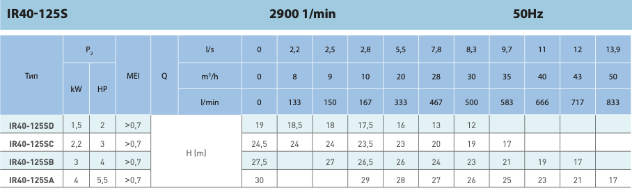 Серия IR — это насосы типа ESCC (End Suction Closed Coupling) — моноблочная и компактная конструкция с целью минимизации затрат и габаритных размеров. Конструкция “back pull-out” обеспечивает возможность демонтировать двигатель и вращающуюся часть насоса без отделения корпуса насоса от системного трубопровода. Конструкция расчитана на большие нагрузки: концевой вал из нержавеющей стали, шариковые подшипники увеличенных размеров, защищённые от внешних воздействий — это гарантирует пониженный уровень шума и увеличенный срок эксплуатации.