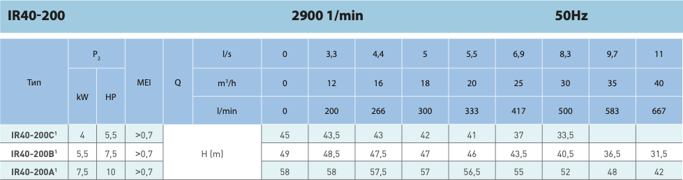 Серия IR — это насосы типа ESCC (End Suction Closed Coupling) — моноблочная и компактная конструкция с целью минимизации затрат и габаритных размеров. Конструкция “back pull-out” обеспечивает возможность демонтировать двигатель и вращающуюся часть насоса без отделения корпуса насоса от системного трубопровода. Конструкция расчитана на большие нагрузки: концевой вал из нержавеющей стали, шариковые подшипники увеличенных размеров, защищённые от внешних воздействий — это гарантирует пониженный уровень шума и увеличенный срок эксплуатации.