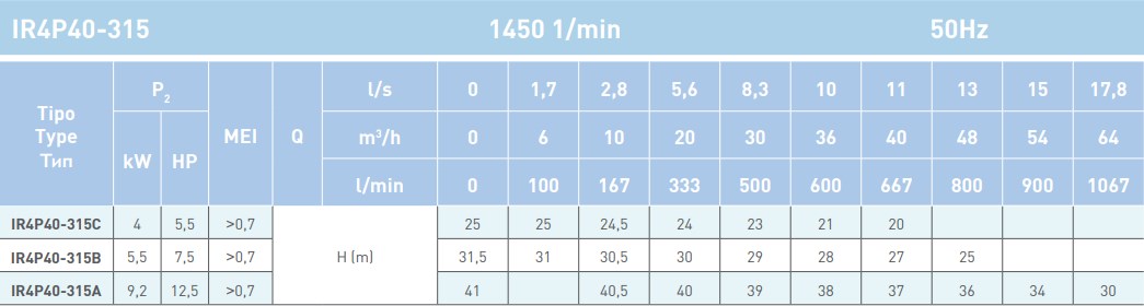 Насосы SAER серии IR4P – это моноблочные электронасосы осевого применяются для циркуляционных, отопительных систем, систем водоснабжения, бустерных установок. Электронасосы могут быть установлены на горизонтальной или вертикальной оси, двигателем всегда вверх. Насосы серии IR, снабжённые частотным преобразователем, встроенным в двигатель насоса. Частотный преобразователь регулирует скорость вращения двигателя, изменяя таким образом параметры насоса, чтобы приспособить их к рабочим условиям.