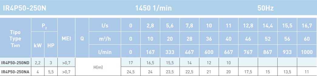 Насосы SAER серии IR4P – это моноблочные электронасосы осевого применяются для циркуляционных, отопительных систем, систем водоснабжения, бустерных установок. Электронасосы могут быть установлены на горизонтальной или вертикальной оси, двигателем всегда вверх. Насосы серии IR, снабжённые частотным преобразователем, встроенным в двигатель насоса. Частотный преобразователь регулирует скорость вращения двигателя, изменяя таким образом параметры насоса, чтобы приспособить их к рабочим условиям.