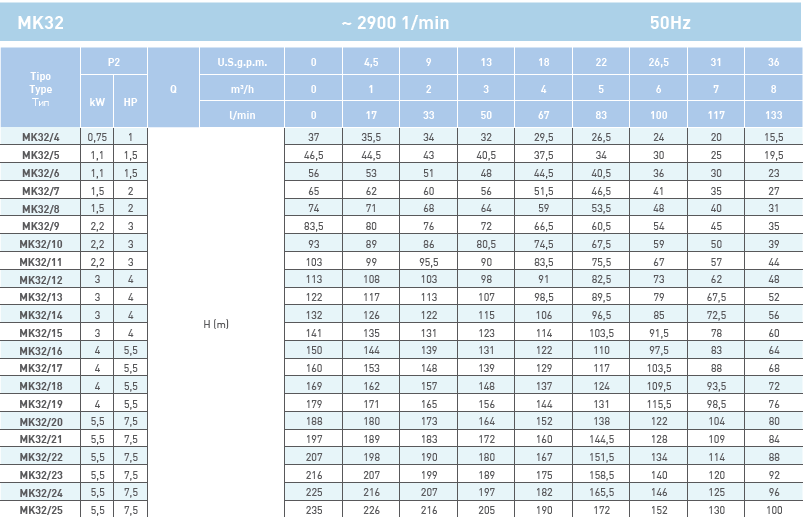 Электронасосы многоступенчатые вертикальные, не самозаливающиеся, минимальных габаритов, пригодные для подъемных систем с автоклавами или без них, ирригационных систем и другого оборудования, требующего повышенных давлений. PMK: насос со свободным концом вала, MK: узел насоса с электродвигателем. Насосы и двигатели соответствуют директиве по энергопотребляющей продукции 2009/125/CE (ErP)