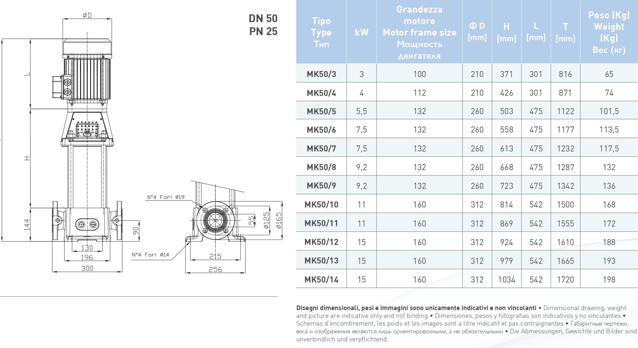Электронасосы многоступенчатые вертикальные, не самозаливающиеся, минимальных габаритов, пригодные для подъемных систем с автоклавами или без них, ирригационных систем и другого оборудования, требующего повышенных давлений. PMK: насос со свободным концом вала, MK: узел насоса с электродвигателем. Насосы и двигатели соответствуют директиве по энергопотребляющей продукции 2009/125/CE (ErP)