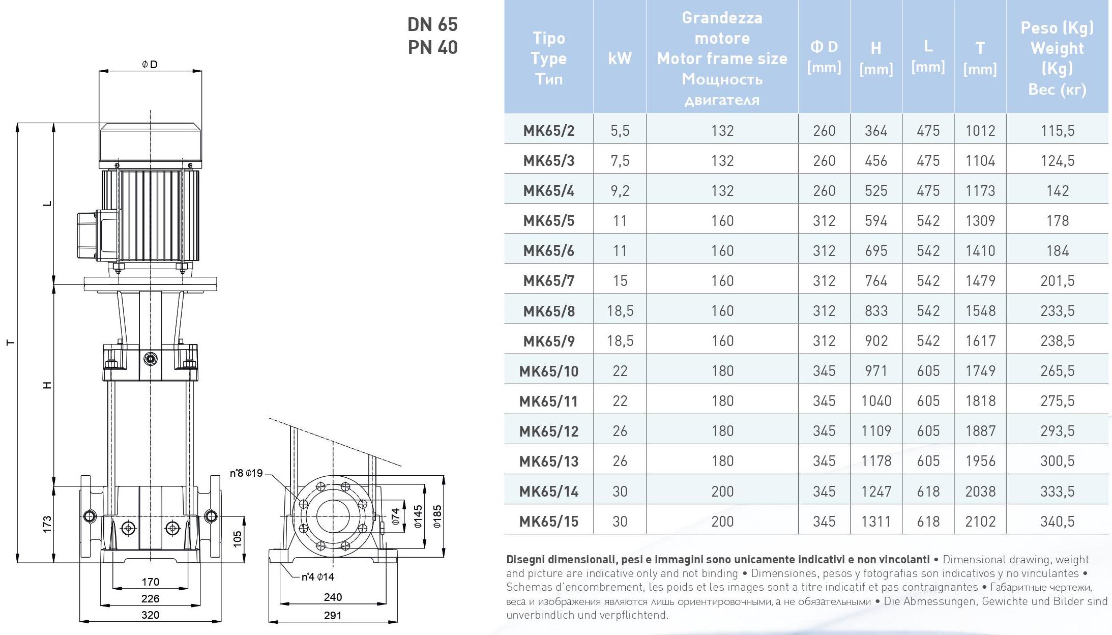 Электронасосы многоступенчатые вертикальные, не самозаливающиеся, минимальных габаритов, пригодные для подъемных систем с автоклавами или без них, ирригационных систем и другого оборудования, требующего повышенных давлений. PMK: насос со свободным концом вала, MK: узел насоса с электродвигателем. Насосы и двигатели соответствуют директиве по энергопотребляющей продукции 2009/125/CE (ErP)