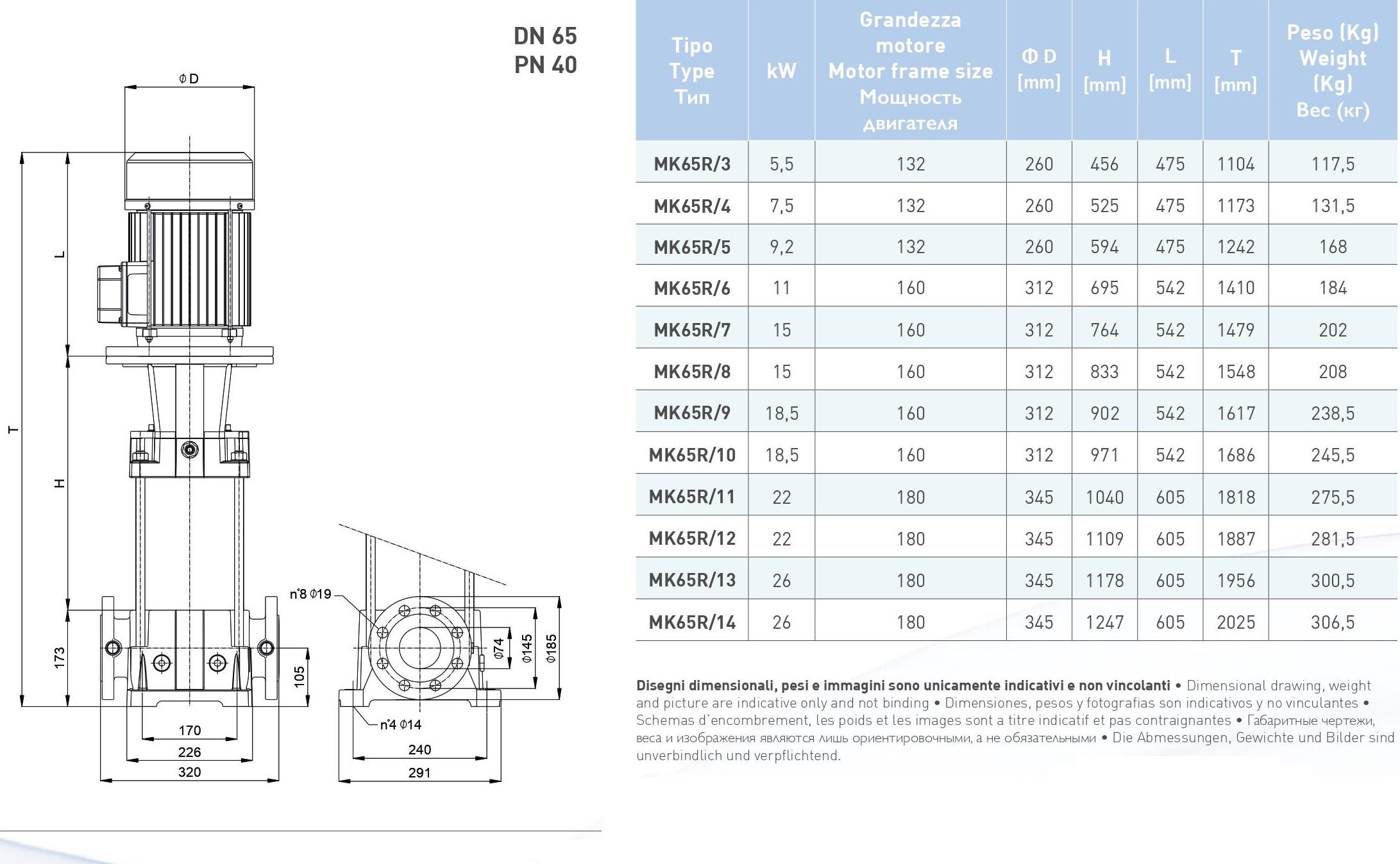 Электронасосы многоступенчатые вертикальные, не самозаливающиеся, минимальных габаритов, пригодные для подъемных систем с автоклавами или без них, ирригационных систем и другого оборудования, требующего повышенных давлений. PMK: насос со свободным концом вала, MK: узел насоса с электродвигателем. Насосы и двигатели соответствуют директиве по энергопотребляющей продукции 2009/125/CE (ErP)