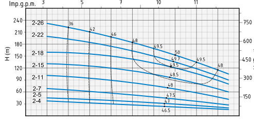 Вертикальные насосы VS 2-26 мощностю 3 кВт с конструкцией патрубков «в линию». Производительность насосов 1 м³/ч. Напор даной модели 232 метров. Насос 3~ 230/400В подключаются к электрической сети. Надежные, прочные, бесшумные, простое обслуживание. Применяется для бытового и коммунального водоснабжения, для перекачивания чистых взрывобезопасных жидкостей, не содержащих твердых и абразивных частиц, для полива в сельском хозяйстве, в системах кондиционирования, водоподготовки, обратноосмотических системах.