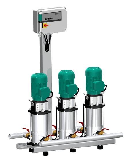 Компактная установка повышения давления согласно стандарту DIN 1988 и DIN EN 806, для прямого или опосредованного подсоединения. Состоит из нормальновсасывающих параллельно подключенных вертикальных высоконапорных центробежных насосов из нержавеющей стали с сухим ротором. Готовая к подключению, установка на фундаментной раме с системой трубопроводов из нержавеющей стали, включая прибор управления со всеми необходимыми измерительными и регулировочными устройствами.
