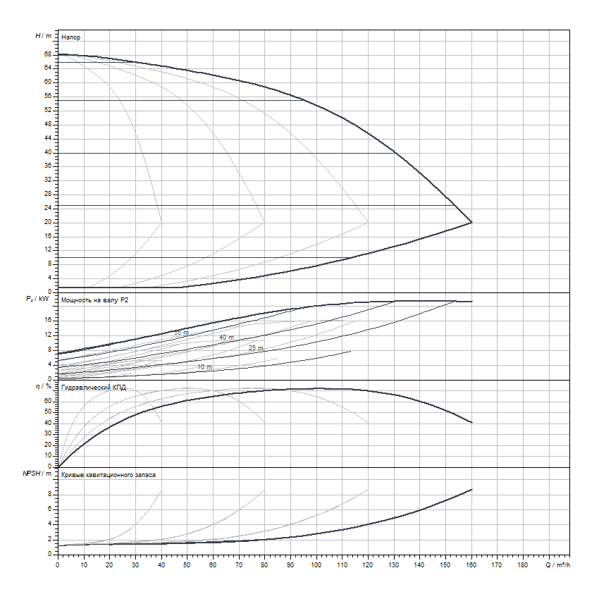 Насосы: Используются от 2 до 4 параллельно подключенных насосов серий Helix VE 2 — Helix VE 52. Частотные преобразователи с воздушным охлаждением, смонтированные на электродвигателе насоса, обеспечивают для всех насосов этих серий бесступенчатый режим регулирования в диапазоне от 25 Гц до макс. 60 Гц.