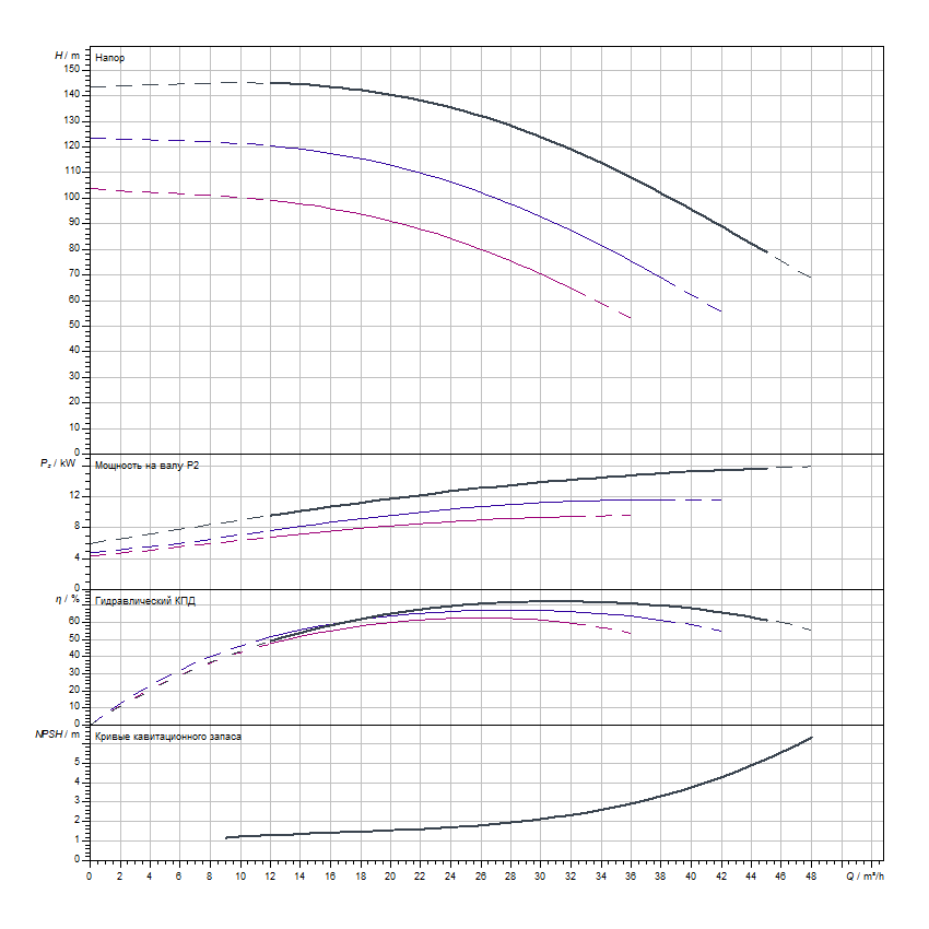 Ступенчатый корпус и ведущие колеса из серого чугуна, а рабочие колеса из серого чугуна с катафорезным покрытием